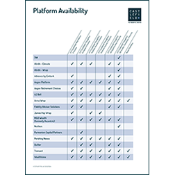 Matrix to show the platforms where the Castlefield Funds and Model Portfolios are currently available.